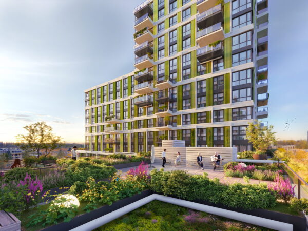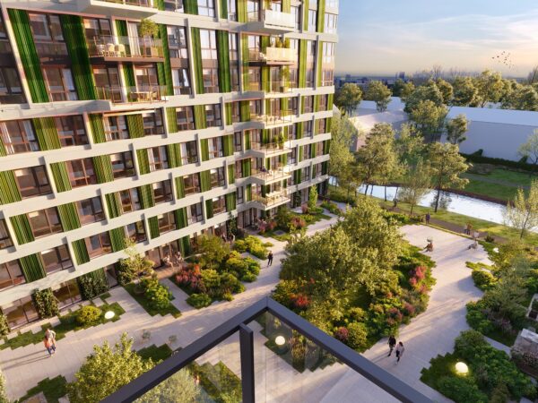 Het woonconcept stimuleert delen en ontmoeten: Friendswoningen, een gedeelde huiskamer, een collectieve binnentuin en dakterrassen. In de plint komt een commerciële ruimte gericht op bewoners en omwonenden. Het ensemble opent zich naar de groene singel; het parklandschap wordt als een groene loper doorgezet naar de binnentuin en begroeide gevels.