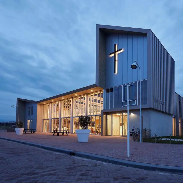 In de wijk Vathorst in Amersfoort is Kruispunt Vathorst gerealiseerd: een open, transparant en multifunctioneel kerkgebouw voor de Kruispuntgemeente. Het ontwerp van RoosRos Architecten kenmerkt zich door grote glaspartijen, lange zichtlijnen en een industrieel karakter, waarmee het gebouw nadrukkelijk de verbinding zoekt met zijn omgeving.