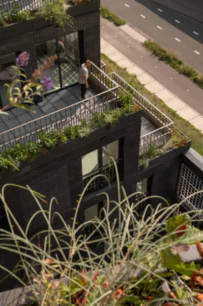 Ook het sterke groenconcept, met daktuinen, beplante balkons en geïntegreerde wateropvang, draagt bij aan een gezond en sociaal woonklimaat. Met zijn karakteristieke zwarte gevels en levendige plint past Track 8 perfect binnen de transformatie van Sloterdijk tot een duurzaam en gemengd stadsdeel.