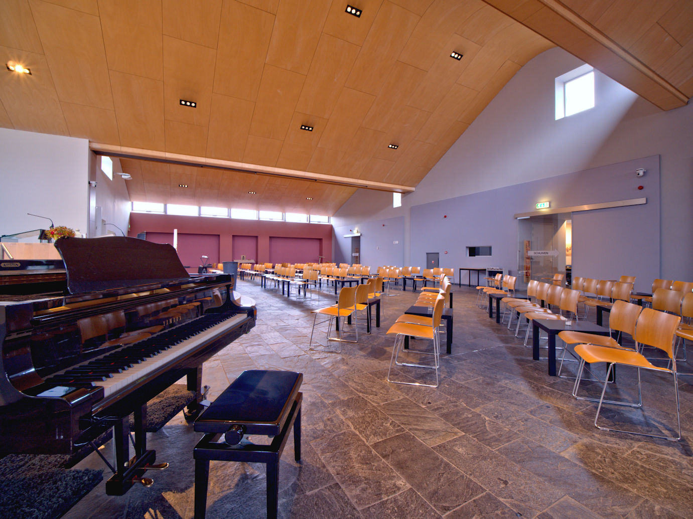 • Akoestische afstemming voor flexibele zaalindeling (1/3 – 2/3 – geheel)